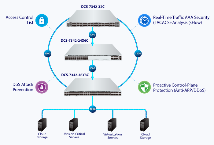 PLANET DCS-7342-48Y8C Version 2 kết hợp các giao thức tự động hóa tiên tiến với kiến trúc bảo mật mạnh mẽ nhằm đơn giản hóa vận hành và bảo vệ các luồng dữ liệu quan trọng trong mạng.