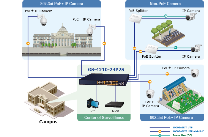 ✔️ Hệ thống giám sát an ninh – Cấp nguồn trực tiếp cho camera IP, giảm chi phí triển khai.
