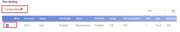 Đối với Tab Port chúng ta sẽ có các thông tin về trạng thái cổng, công suất sử dụng PoE (nếu đây là switch PoE)