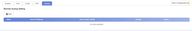 Với Tab NTP và Syslog chúng ta có thể tùy chỉnh thời gian cho thiết bị và lưu trữ log của thiết bị.