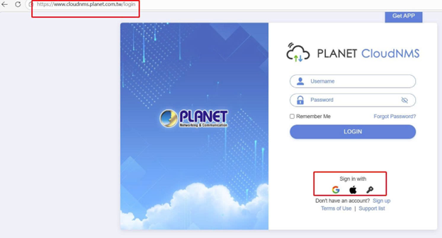 Mở trình duyệt web và truy cập link: https://www.cloudnms.planet.com.tw